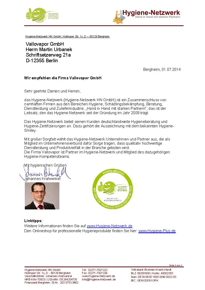 Die Vallovapor GmbH ist seit 2009 mit eigenen Produkten im Bereich der Schimmelsanierung, Desinfektion und Geruchsneutralisation im Einsatz. Die Vallovapor Gruppe bietet Servicedienstleistungen als auch Produkte zur Eigenanwendung an. Unsere Produkte sind bei der BAUA (Bundesanstalt für Arbeitsschutz und Arbeitsmedizin) und BFR (Bundesinstitut für Risikobewertung) registriert. Darüber hinaus stellen wir Ihnen gerne Empfehlungen, Gutachten, Zertifikate und Stellungnahmen zu unseren Produkten zur Verfügung – bei Bedarf auch auf englisch.