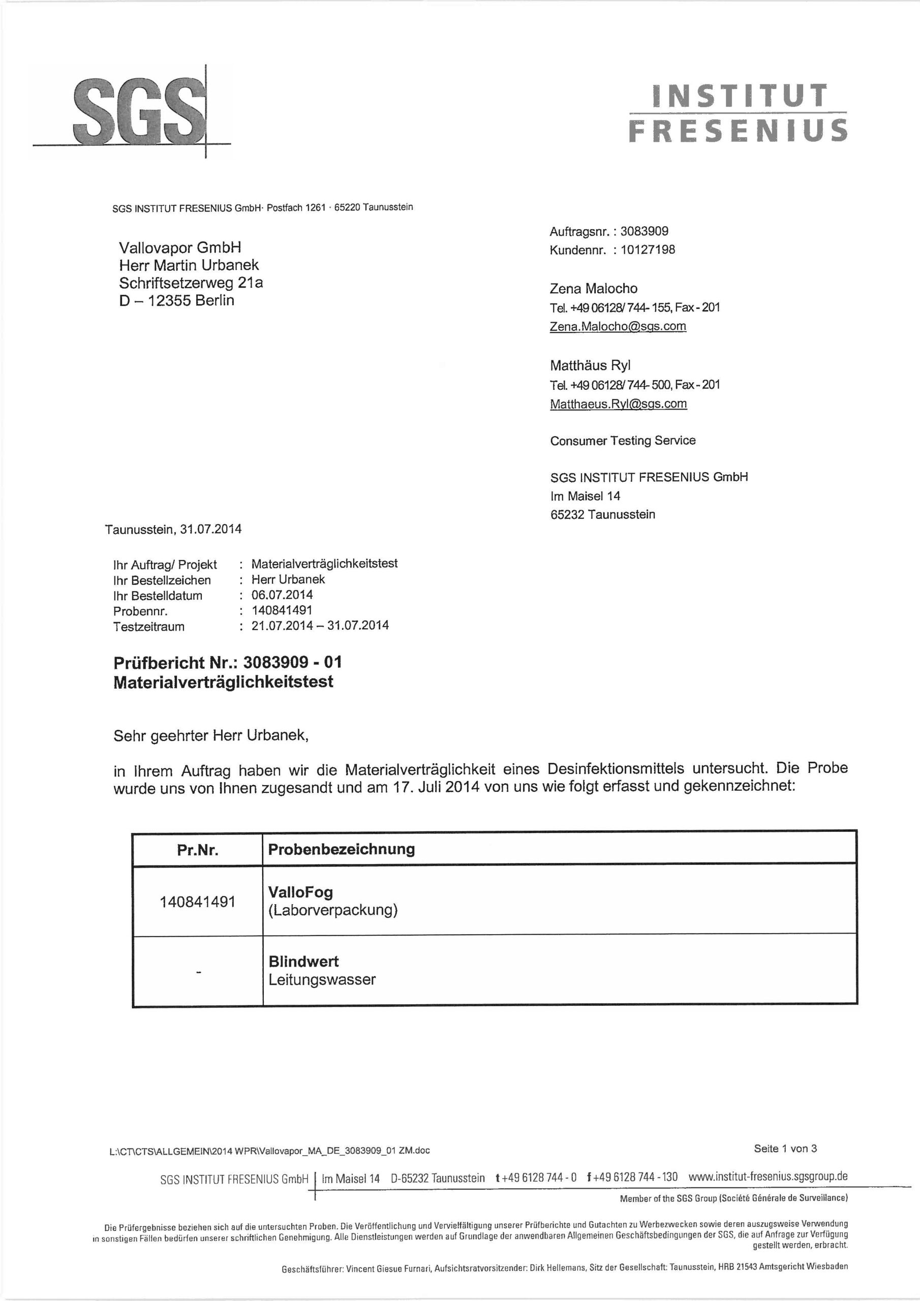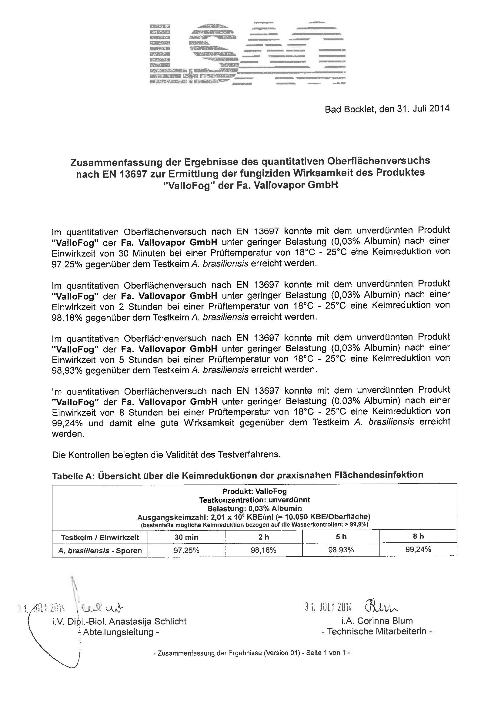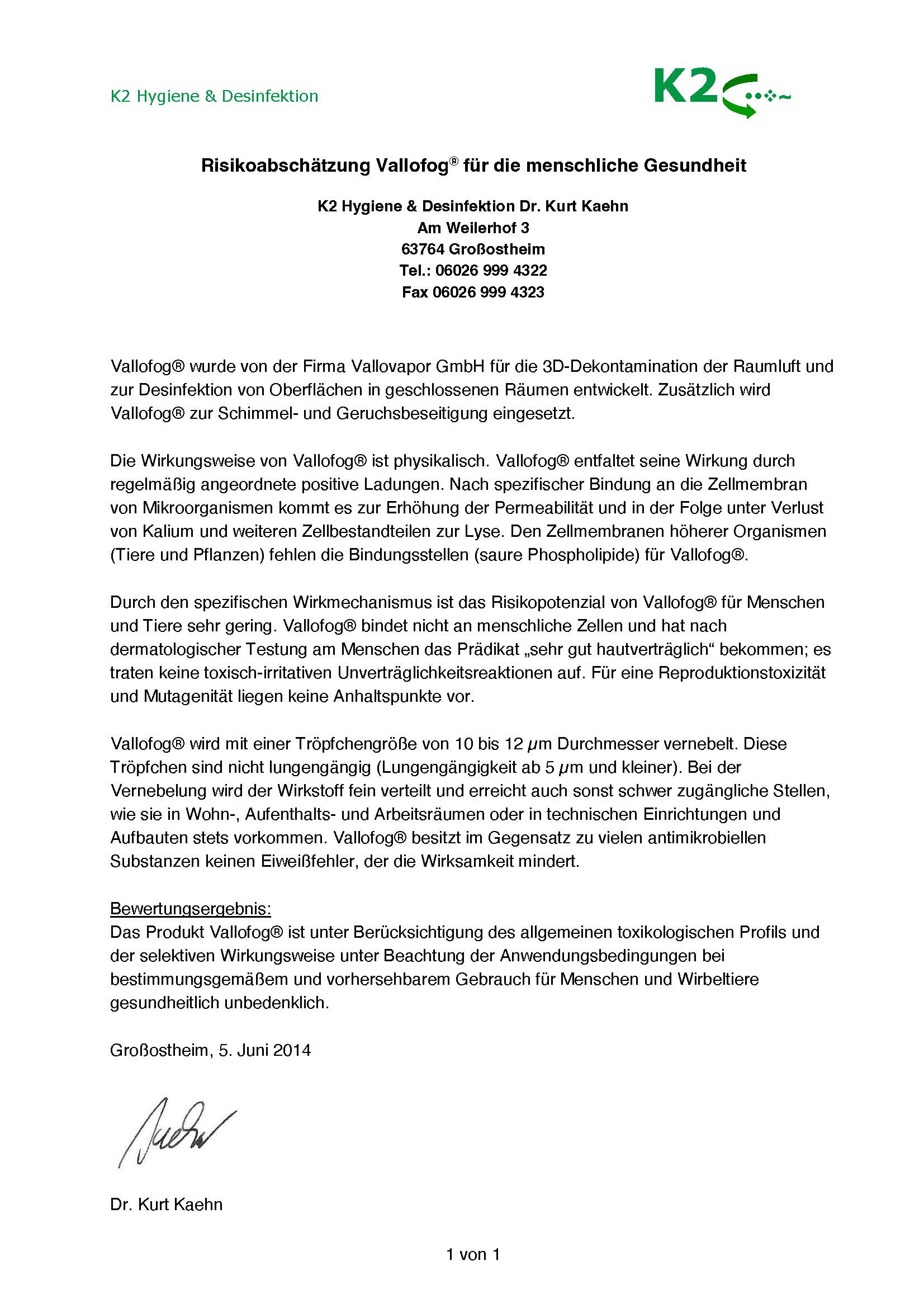 - ValloFog Domestic ist bei der Bundesanstalt für Arbeitsschutz und Arbeitsmedizin unter der Nummer N-109122 registriert.